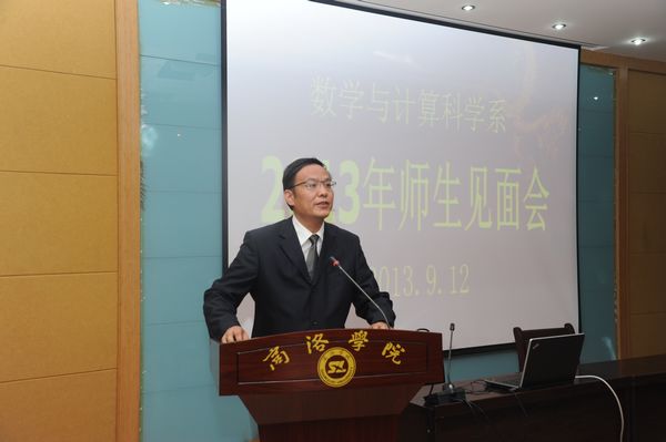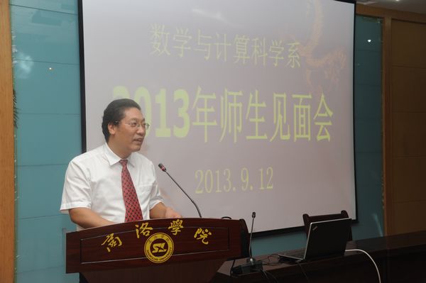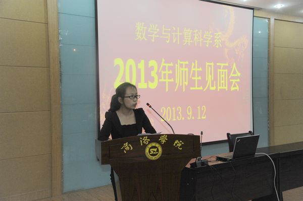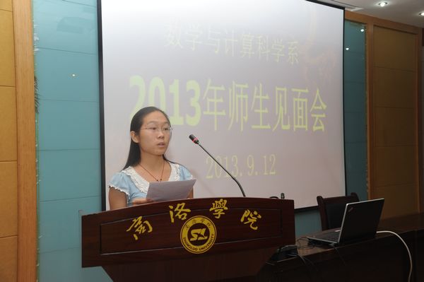 系主任李超老师首先向2013级新同学介绍了我系全体教师,系党总支副书记赵健老师致欢迎词并介绍了我系的基本情况。数应1204班赵孟孟同学代表在校生分享了自己的学习经验,数应1303班高嘉伟同学代表新生作了表态发言,表示会严格要求自己,努力在大学四年的时间里提高自己各方面能力。教师代表杨燕老师对新同学提出了几点要求和希望,希望新同学要认真学习,合理安排时间,严格要求自己,为将来的就业或升学打下坚实的基础。