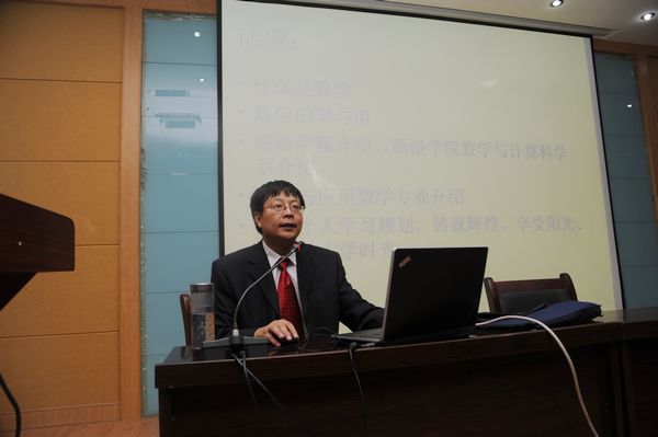 见面会的最后,我系教授王念良博士向新同学详细介绍了数学与应用数学专业的基本情况,他的讲解深入浅出,激发了同学们学习数学的兴趣,同时鼓励同学们制定完备的大学四年学习、生活规划,希望新同学能在数学与计算科学系有一个美好的学习生活经历。