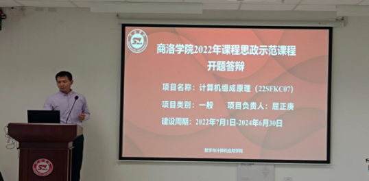 为深入贯彻落实教育部《高等学校课程思政建设指导纲要》精神,把思想政治教育贯穿人才培养全过程,发挥好每门课程育人作用,我院于9月21日下午在学院会议室开展了校级课程思政示范课程建设项目开题答辩评审会。副院长王念良、应用数学系系主任程国、计算机科学系系主任韩波、院督导组组长王重英、数学系教师杨燕5位专家出席了答辩会,2022年校级课程思政示范课程《计算机组成原理》项目负责人屈正庚参加答辩。