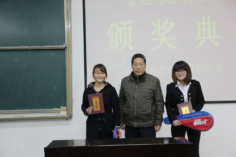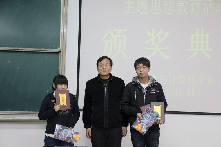 主题思想教育活动是根据院学生处的安排结合我系专业特色而进行的一项具有深刻意义的思想政治教育活动,我系根据院学生处的文件精神,紧扣时代热点,先后组织开展了《大学生良好素质的自我培养》专题报告会、数学与计算科学系第四届双语教学技能大赛、迎十八大“爱我中华”配乐朗诵赛等系列活动,取得了良好的效果,涌现出了许多表现优秀的学生。颁奖典礼上,系领导和老师分别为教师技能大赛和配乐朗诵赛一、二、三等奖和优秀奖获奖选手颁奖,获奖同学分别作了汇报讲课和朗诵,李主任对同学们的讲课情况作了精彩点评,辅导员郭萌老师和全体师生一起学习了《商洛学院系级学生工作量化考核办法》,赵书记对我系学生管理工作作了总结讲话,勉励大家勤奋学习,全面发展,立志成才。