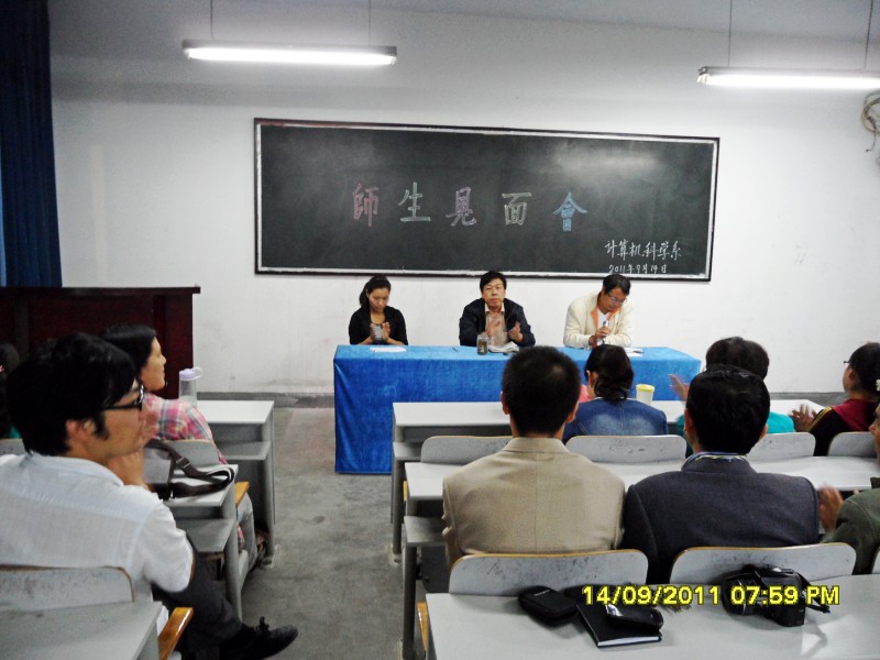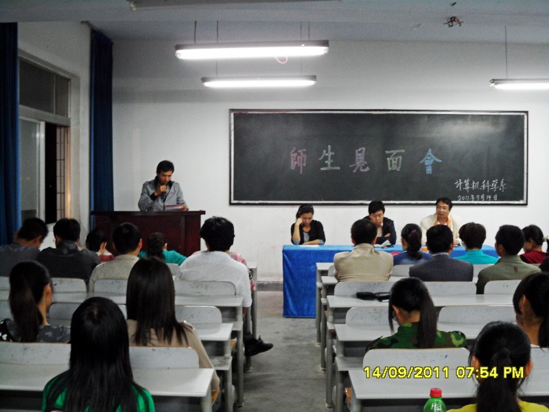 2011年9月14日晚上,我院2号教学楼323教师内掌声不断,计算机科学系在此召开2011级新生与教师见面会,系党政领导樊景博主任、王志刚书记、全体教师及2011级86名新生参加。会议由卢琼主任主持。
