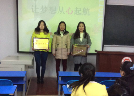 班会上,黄洁老师首先对2014--2015学年各班的工作进行了全面的回顾、检查、分析和总结。肯定了同学们取得的成绩。并借此机会宣布了“三好学生”、“优秀学生干部”、“优秀班集体”、“三早一晚先进班集体”的获奖人和获奖班级,特请辅导员刘露老师给获奖者和获奖班级进行颁奖。