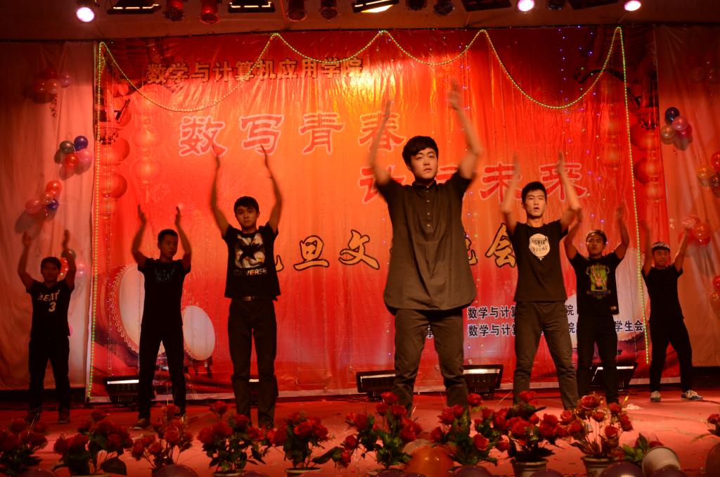 19:30,充满活力的开场舞《中国范》瞬间活跃了现场的气氛。4位主持人走上舞台,对到场的各位领导、老师、同学们表示热烈的欢迎,随后在全场观众热烈的掌声中宣布“数写青春,计往未来”元旦晚会正式开始。