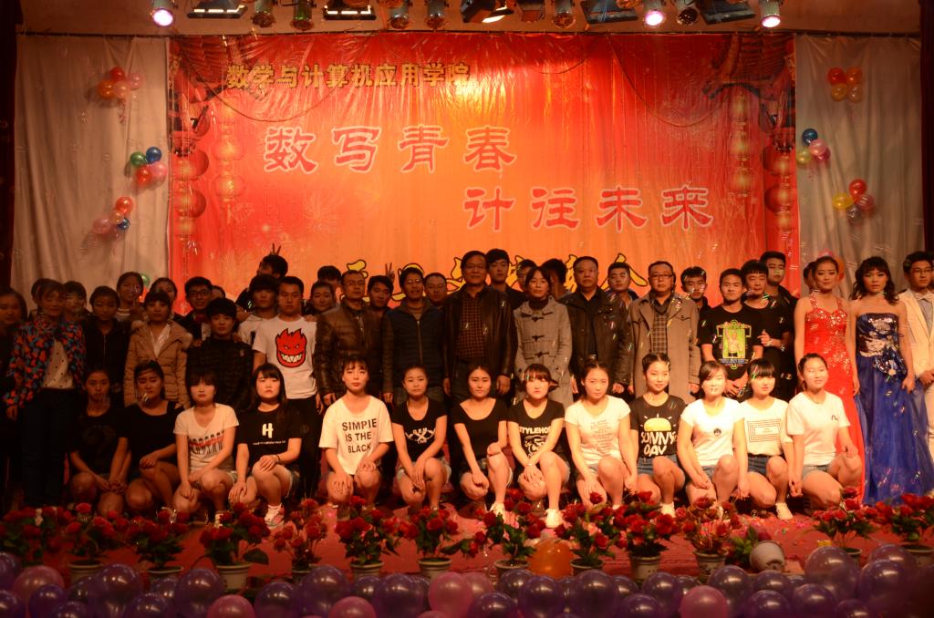 12月18日晚,以“数写青春,计往未来”为主题的数计学院2016年元旦文艺晚会在大学生活动中心精彩上演,冬夜的寒意丝毫没有影响大家对晚会的热情,本次晚会邀请到党委宣传部副部长鱼小强老师,干部人事处副处长赵健老师,教务处处长李超老师,院团委副书记彭晓邦老师,保卫处副处长余发有老师,工会副主席刘霞老师,后勤保障处副处长敬晓明老师,各院党总支书记。我院全体教师以及2015级和2014级全体学生观看了此次晚会。