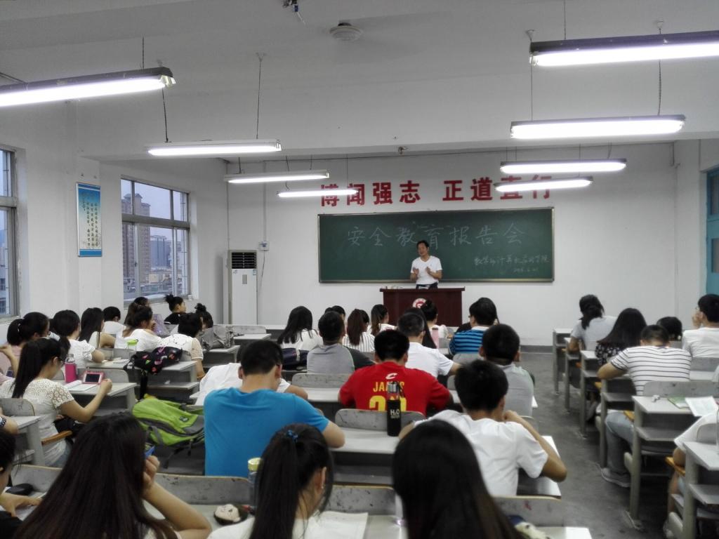 为了贯彻落实学校稳定安全工作会议精神,以维护稳定为首要政治任务,以“平安校园”创建活动为抓手,坚持安全教育与管理,做到治理与建设相结合,进一步做好学校安全稳定工作,维护校园良好秩序,营造稳定、安全、文明、健康、和谐有序的育人环境,按照学校保卫处“关于做好2015-2016学年第二学期学生安全教育通知”要求和我院安全教育具体安排,从2016年4月26日到6月21日,数计学院辅导员黄洁老师、赵萍老师和刘露老师分9次,3个专题分别对我院不同专业、不同年级的所有学生做了安全教育专题报告,报告内容涵盖了人身财产、网络安全、急突发事件、法律知识和校纪校规教育、消防安全教育、食品安全、借贷安全、电信诈骗、心理健康教育等大学生安全教育的方方面面。