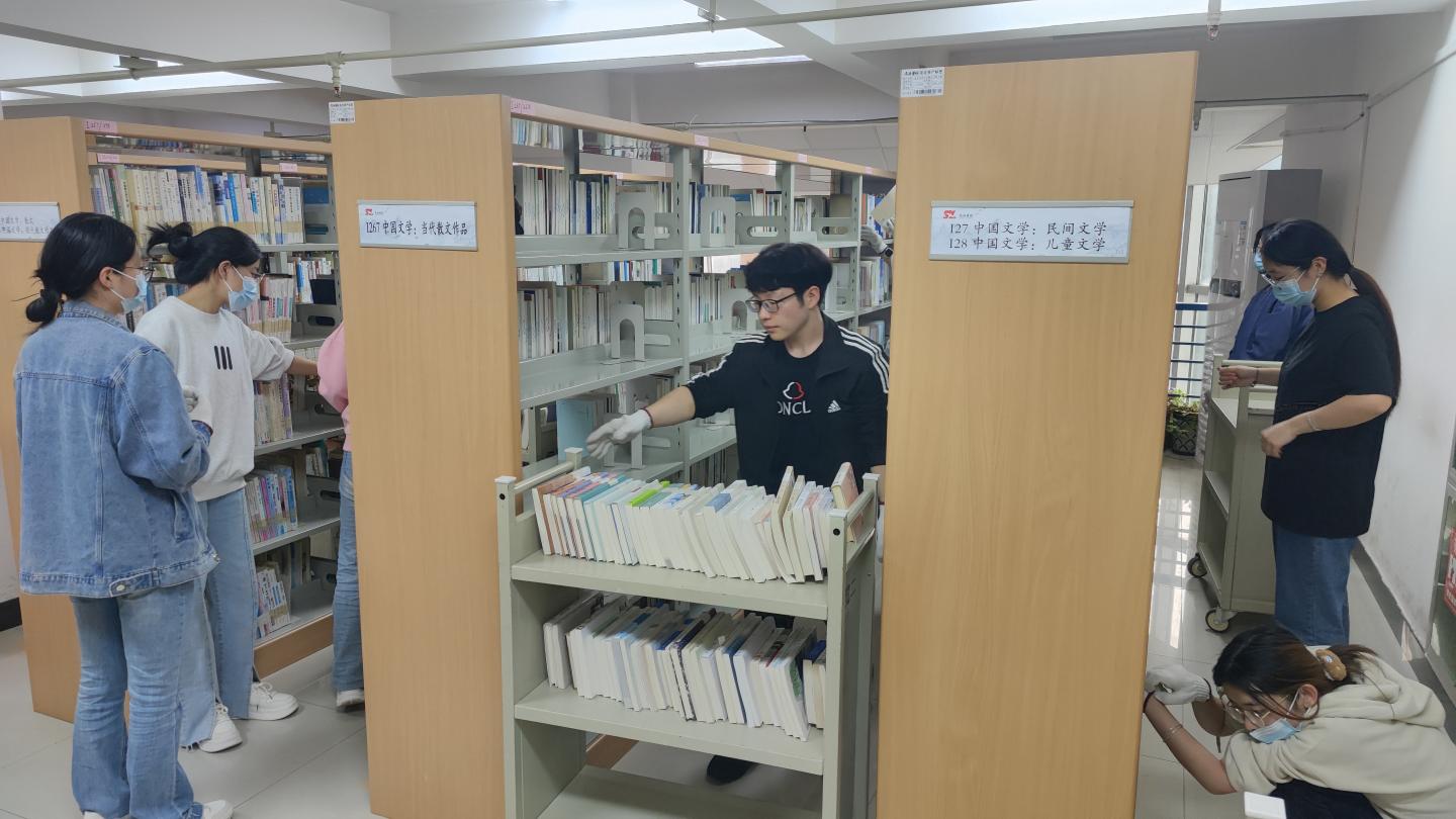 活动伊始,图书馆直属党支部的工作人员对学生党员、入党积极分子志愿者进行了简单培训,详细讲解了图书分类、上架及整理的基本流程。随后,志愿者们迅速投入工作,分工明确、默契配合:有的负责将散乱的图书按分类号重新排序,有的细心擦拭书架和图书封面,有的协助将归还的图书准确上架。大家不怕脏、不怕累,认真细致地完成每一项工作。