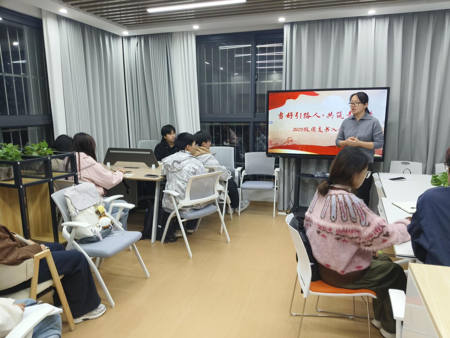 在培训过程中,赵老师就同学们在党务工作和团支书工作中遇到的常见问题进行了详细解答,并结合自己的工作经验和实际案例,给出了切实可行的解决方案和建议,帮助学生干部更加清晰地了解发展党员工作的流程和要求,鼓励在场学生干部要做好自身学业发展规划,在努力学习专业知识的同时,不断提升自己的综合素质。