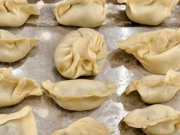 活动开始,同学们迅速分组围坐在操作台前,纷纷大显身手。手法娴熟的同学迅速展开行动,圆润的饺子皮在指尖翻飞,一个个造型精致的饺子很快摆满托盘;初次尝试的同学则在食堂阿姨的指导下,认真学习捏合技巧,从笨拙的“小包子”到逐渐成型的饺子,每一步都充满成就感。现场不时传来欢快的笑声,大家互相展示自己的“创意作品”,有的包出元宝形、月牙形,有的还尝试了卡通造型,创意十足的饺子引来阵阵赞叹。