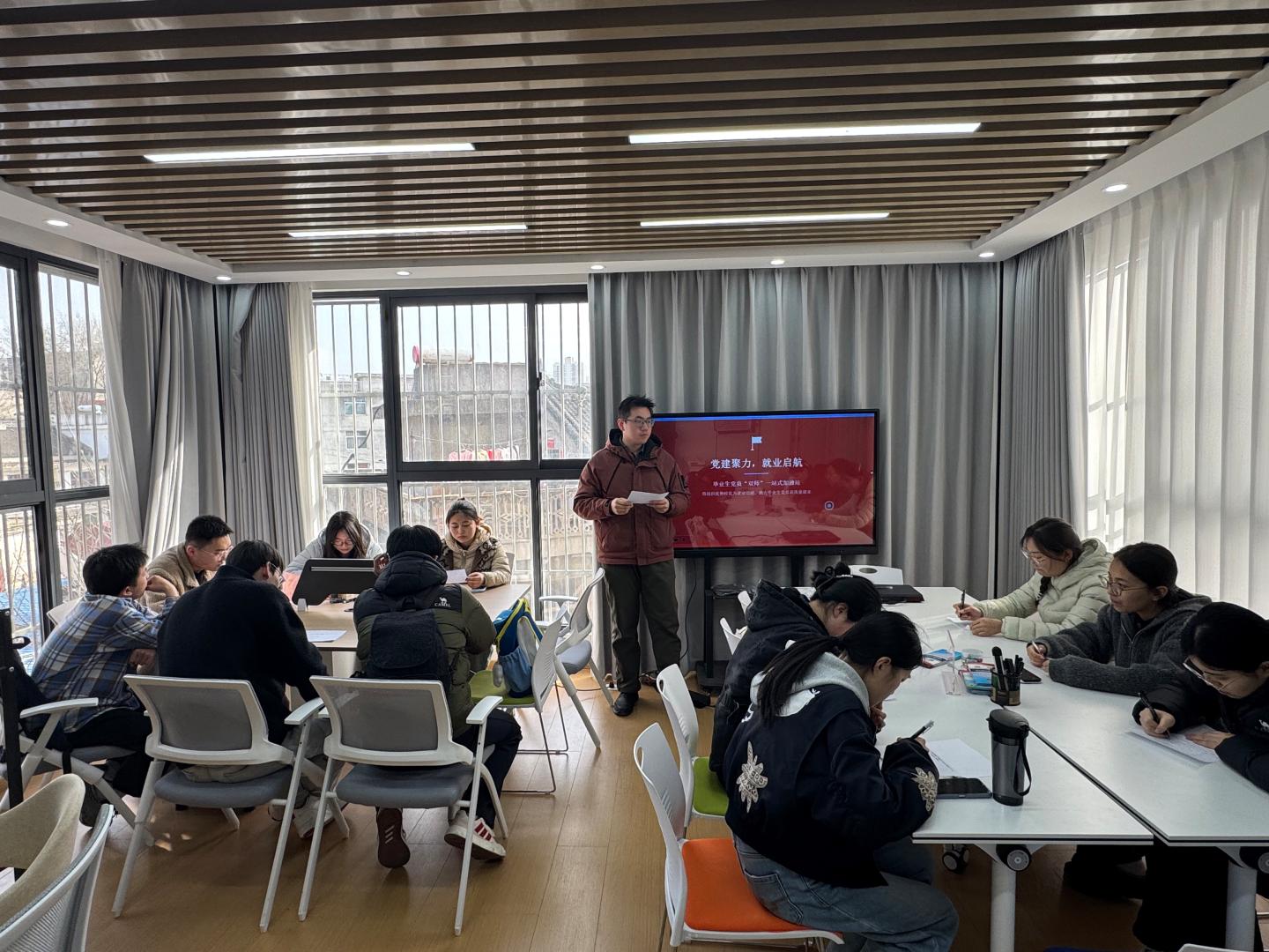 活动伊始,杨智皓围绕党员先锋带头作用作动员讲话,强调毕业生党员不仅是求职路上的奋斗者,更应是身边同学的引领者和服务者,鼓励大家主动亮身份、做表率,积极分享优质就业信息,带动周边同学提振信心、抢抓机遇、尽早就业。
