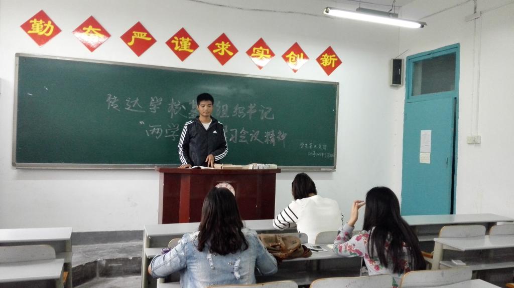 首先,各支部书记向全体支部党员传达了学校基层党组织书记“两学一做”学习教育培训会的精神和主要内容,包括校党委副书记、副校长范新会的动员讲话、总结讲话和专题辅导报告《关于习近平总书记系列重要讲话精神》,陕西省委党校党建部副主任刘飞的专题辅导报告《新时期党建工作的目标和任务》,党委副书记彭虎军关于《中国共产党章程》《条例》《准则》的专题辅导报告,党委委员、干部人事处处长高荣发的专题辅导报告《高校基层党组织工作内容和方法》的主要内容,以及前往铜川照金参加革命传统教育和党性教育现场教学和分组讨论交流情况。然后组织各支部党员集体学习了《中国共产党纪律处分条例》和《中国共产党廉洁自律准则》,集体重温了党支部书记和各支部委员的工作职责,最后广大学生党员纷纷交流讨论:在我校即将到来的40周年校庆中,自己应如何发挥模范带头作用。