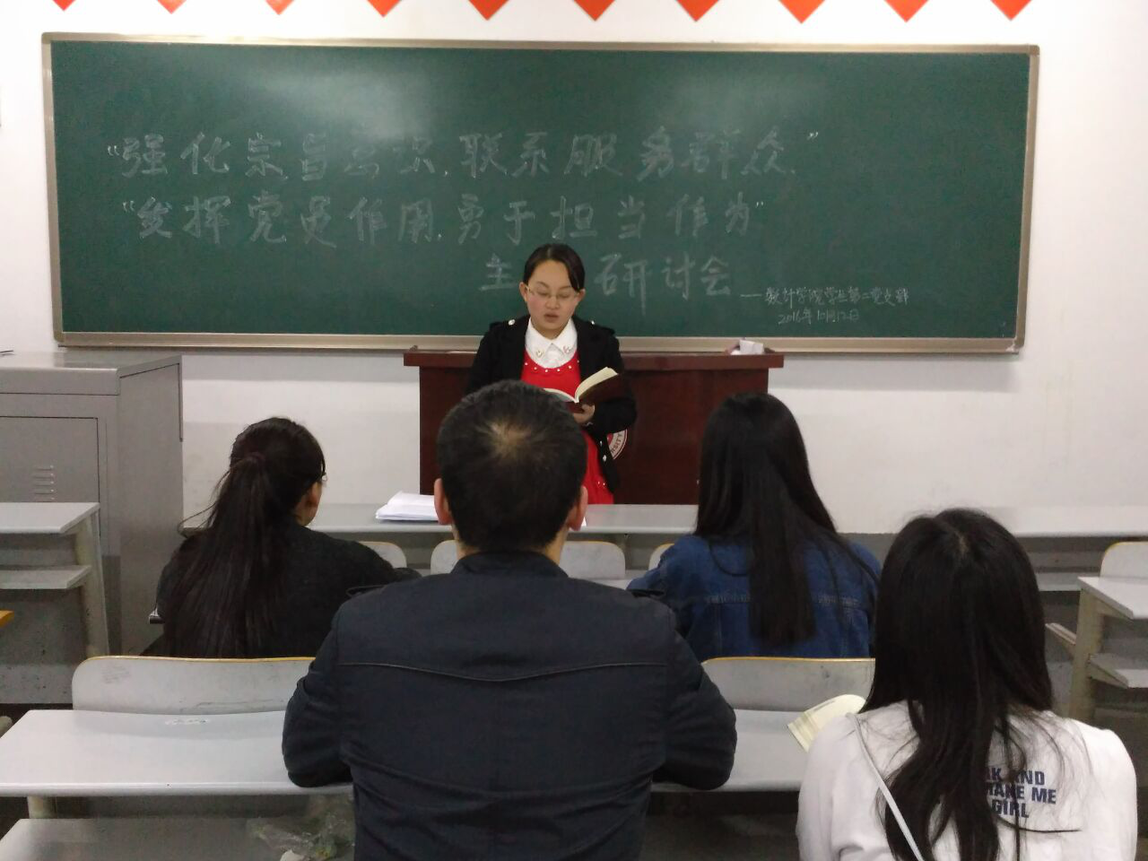 然后他们强调此次学习研讨各位党员要紧密围绕主题,结合学校实际,联系个人思想、工作、学习和生活实际,踊跃发言。通过学习研讨,各位党员要真正提高认识、找到差距、明确努力方向。