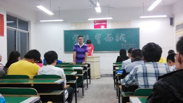 9月27日晚,我系在一号教学楼302教室举行了系团学干部换届暨面试大会,系团总支书记张文、数学1302班班主任黄丽琼、城发系辅导员金敏、艺术系辅导员李川及系学生会主席李育丞担任面试评委,全体团学干部及部分2013级新生参加大会。大会由系团总支副书记李甜主持。