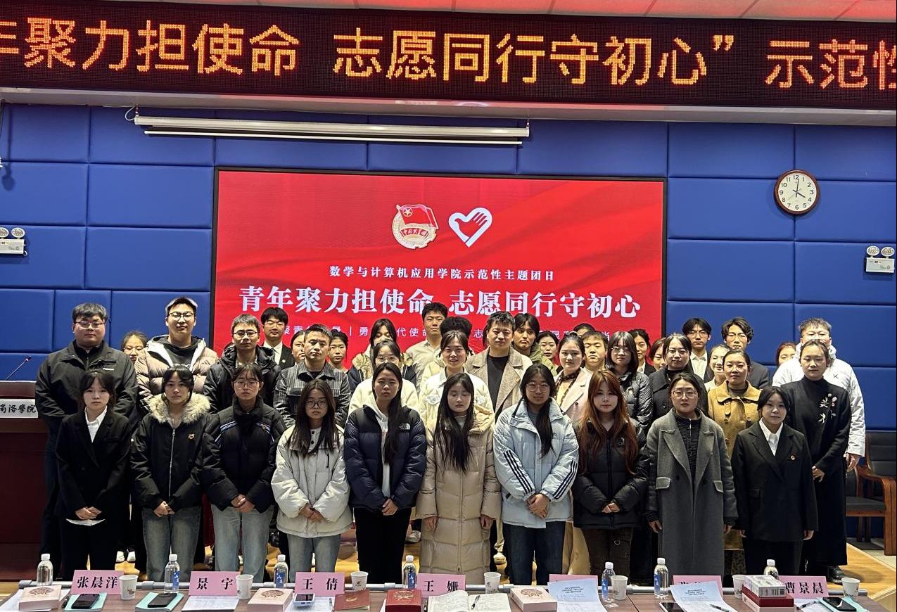 为凝聚青年力量,传承志愿精神,12月18日15:00,由校团委主办,我院承办的“青年聚力担使命,志愿同行守初心”示范性主题团日活动在北新街校区8号教学楼多媒体18教室顺利举行。校团委书记王姗、各二级学院团总支书记及学生团员代表到场参与,活动由数学2402班文浩璠主持。